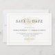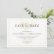 Enkel elegant spara datum bröllopsinbjudan med guldtoner blomsterbukett som en guldvattenstämpel.