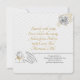 Från vår skål till femtio år 50-års bröllopsdagskollektion med diagonala ränder i silvergrått på vitt, vita rosor med gyllene blad och falsk guldbladstypografi med evenemangsinformation på baksidan och parets namn och evenemangsdatum på framsidan.