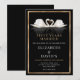 Vackra målade svanar på svart, vit och guld tema Guldbröllops inbjudan. Klassisk och unik.