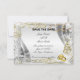 Vacker med guldspiraler, diamintaccents och guldbröllopsringar. Detta vackra spara datum-kort är ett stilfullt sätt att tillkännage din stora dag. Anpassa kortet genom att ändra texten i de angivna fälten. Du kan ändra typsnitt, storlek och färg.