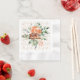 En vacker bröllopsdusch servett, för att matcha pappers tallrikarna, med ett överlägg av guldbröllopsringmönster med en stor akvarell orange ros i mitten av servetten.