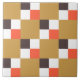 Detta djärva geometriska mönster har en dynamisk schackbrädesdesign i varmt gyllene brunt, djupt espressobrun, ljust korallorange och krispigt vitt. De stora rutorna skapar en solid grund medan mindre accentblock tillför rytm och kontrast genom hela kompositionen. Samspelet mellan jordnära toner och levande färgglada inslag ger designen både balans och energi. Dess upprepade motiv fångar ögat med en mix av retro-karaktär och modern minimalism, vilket gör det till ett slående val för alla som älskar strukturerade, färgglada mönster.
