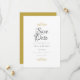 Detta trendiga bröllopskort har guldduvor och hjärtan ovanför och under din text i klassisk elegant typografi.