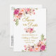 Guldet Modern Elegant Rosa Blommigt Spara datum Meddelande Vykort