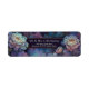 Förhöj din korrespondens med den överdådiga, himmelska skönheten i denna intrikata botaniska komposition. Designen visar upp magnifika lavendelgröna pionblommor, var och en renderad med fin guldetsad detalj som skapar en skimrande, flerskiktig textur. Dessa blommor framträder från en drömlik bakgrund av indigo virvlande molnmönster och djupa violetta vågor, alla upplysta av en stänk av glödande guldstjärnstoft. En horisontell mörklila ram med en smal guldkanter ger ett sofistikerat utrymme för din information. Denna returadressetikett är ett förstahandsval för himmelska bröllop, stämningsfulla vinterfiranden eller konstnärliga högklassiga postutskick. Den säkerställ