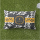 Guldfärgad gul med träkolgrå monogram utomhuskudde