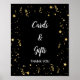 Denna Guldfirande på svarta baby shower kort och presentkort skylt är perfekt för en klassisk baby shower för pojke eller flicka. Den moderna designen har falska gulddekorationer på en svart bakgrund med elegant vit kalligrafi. Denna skylt kan användas för en baby shower, bröllopsfest, födelsedag eller någon annan tillställning eller fest.