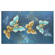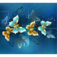 Komposition av flygande, smycken, guld och mörka fjärilar på texturerad smyckesbakgrund. Guld fjäril.