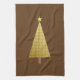 Ett förenklat modernt tag på en klassisk Julgran-motifhandduk, guld-folie/brocade, i en antikisk blommigt tapet-utformning, på chokladbrun