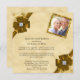 Denna vackra och eleganta design, kallad "Gold Glitter 50th Wedding Anniversary", har en vacker ljusgyllene bakgrund. I motsatta hörn finns ett vackert guld folie-utseende damaskmönster med ett guld band. I mitten av varje band finns en falsk diam edelsten. Denna design är perfekt för paret som firar sin 50-årsdag med den speciella safir-inspirerade designen som en nickning till traditionell årsdagspresent. Detta skulle vara perfekt för din femtioårsfirande bröllopsfest eller evenemang!