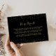 Detta eleganta bröllopsreceptförfrågningskort med guldglitter är perfekt för en enkel bröllopsfest. Designen har vackra guldglitterelement på en svart bakgrund för att försköna ditt evenemang.