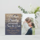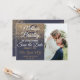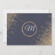 Glamourösa, chic och eleganta falska tryckta gnistrande guldglitter på marinblå, Spara-datum bröllopskort. Denna klassiska och sofistikerade design är perfekt för det trendiga och stiliga paret som gifter sig. Personifiera med ditt eget meddelande på framsidan samt en anpassad monograminitial på baksidan. Allt foto print design.