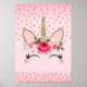 Guldglitter & Rosa Blommig Enhörning Trendig Poster