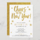 'Skål för det nya året' Nyårsfest inbjudan i glänsande guldglitter med stjärnor på vit bakgrund. Anpassa bakgrundsfärgen om du önskar och lägg till alla dina detaljer för att låta folk veta om din händelse!