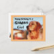Fira hennes födelsedag med ett rörande meddelande "En gyllene flicka" för att glädja ägare till golden retriever. Postkortet visar en vacker golden i en klassisk mästarpose. Designad i glada guld- och svarta färger, kommer kortet att bli en fin födelsedagspresent för en kvinna som är golden retriever-fan!