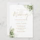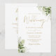 Denna eleganta bröllopsinbjudan med guld botaniska gröna blad kan anpassas med din information i chic typografi med din bröllopswebbplats detaljer och din QR-kod på baksidan. Designad av Thisisnotme©