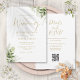 Guldgrönska Blommig QR-kod Script Bröllop Inbjudningar