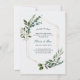 Skicka en inbjudan till familj och vänner för att låta dem veta att datum för ert bröllop har ändrats. Kort med akvarellgrönska med bladverk i en gyllene geometrisk ram. Anpassa med din information eller klicka "Klicka för att anpassa ytterligare" för att redigera typsnitt, storlek och färger.