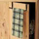 Denna kökshandduk har utseendet av en vävd korg. Den ursprungliga illustrationen av ZoeSPEAK är gjord i sicksack-jordtoner av ljust guldbrunt och blekgrönt, med en antydan här och där av mauve. De band som bildar korgflätans design täcker hela handduken. De neutrala färgerna passar väl ihop med många stilar av inredning.