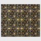 Elegant svart och guld geometriskt mönstrat presentpapper. Designen har ett sömlöst mönster av abstrakta, stiliserade fyrverkerier eller stjärnexplosioner i metalliska nyanser av guld, brons och koppar mot en djärv svart bakgrund. Detta populära geometriska stjärnmönster i Mid-Century Modern-stil är en mångsidig och trendig design. Detta dekorativa och lyxiga presentpapper är idealiskt för speciella tillfällen som bröllop, födelsedagar, jul och nyårsfirande.