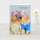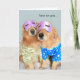 Fira din årsdag med stil med detta söta kort! Designen har ett fotografi av två golden retriever hundar som bär pyjamas och sömnmasker med ögonfransar, och som kramar varandra. Anpassningsbar text lyder, "Bredvid dig är där jag vill vara. Glad årsdag!"