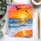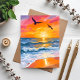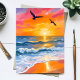 Guldhav Solnedgång Akvarell Strand Målning Kort