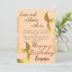 Lekfull och rolig undervattens tema för födelsedagsinbjudan mallkort med en guld färgad havsfröken svans. Texten högst upp säger "Fira med oss". Roligt festtema för flickors födelsedag. glöm inte att anpassa designen till ditt barns smak.