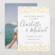 Med signaturstilnamn och guldfärgad hjärtkonfetti kan detta eleganta "save the date"-kort anpassas med ert speciella datum i chic grå text och ert foto på baksidan. Designad av Thisisnotme©