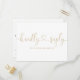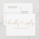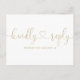 En elegant RSVP-kort med guldbokstäver. Baksidan visar era detaljer och en rolig sångförfrågan för gästerna. Designad av Thisisnotme©