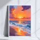 Guldhour Orange Solnedgång Strand Hav Måleri Poster