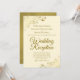 Denna enkla inbjudan är utformad för gäster som är inbjudna till mottagningen men inte själva bröllopsceremonien. Den har en elegant och stilren design med fin guldsnitt på en elfenbensvit, kräm eller off-vit bakgrund och utsmyckade gyllene falska foliekrullar och virvlar i hörnen. Vacker väg att inbjuda dina vänner och familj att fira med dig!