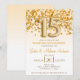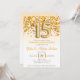 Detta är en inbjudan till en 15-årsjubileumfest med guldglitter och konfetti tema. 15