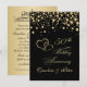 Guldfärgade hopkopplade hjärtan och runt konfetti på svart bakgrund 50-års bröllopsinbjudan