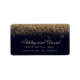 Guldkonfetti marinblå modern adressetikett. Vacker enkel vintage glam guldkonfetti mot en marinblå bakgrund. Denna anpassade moderna design kan enkelt anpassas med dina egna detaljer.