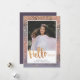 Skicka nyårshälsningar med stil med dessa moderna fotokort, med falskt guld folie konfetti över en gradient vattenfärg bakgrund. Kortet innehåller textmallar på baksidan för mer anpassning.