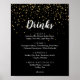 Guldkonfetti | Svart meny för bröllopsdrycker skyl Poster