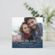 Detta fyrkantiga datumkort för bröllopsinbjudan har en fotoram som fyller hela framsidan av kortet. En marinblå gradient och enkla guldkonturer betonar fotots nedre del. Anpassad text låter dig lägga till namnen på bruden och brudgummen samt deras kommande bröllopsdatum och plats.