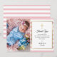 Klassisk babyrosa rand dop- eller dopfotograf tackkort med ett guldkors med en elegant falsk guld folie kant som ramar in dina detaljer i modern typografi. Personifiera med ditt foto och speciella dop- eller dops tackmeddelande i chic typografi på denna moderna eleganta design. Designad av Thisisnotme