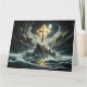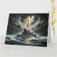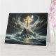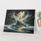 En kristen religiös dramatisk scen med ett guldkors vid ett stormigt hav.