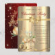 En elegant julfestinladan med en gyllene julren, band och champagneglas på röd bakgrund. Dessa vackra julinbjudningar är perfekta för inbjudningar till julmiddag, inbjudningar till presentutbyte, julgalor, julfestligheter och andra evenemang som hålls under december månad. Använd bara mallfälten för att lägga till din egen evenemangsinformation.