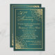 Guldlindrig ornament på teal gradient bakgrund 50-års bröllopsinbjudan. På baksidan - du kan lägga till ditt eget foto och personlig information.