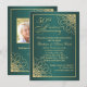 Guldlockig ornament på teal gradient bakgrund 50-års bröllopsjubileum inbjudan. På baksidan - du kan lägga till ditt eget foto och personlig information.