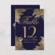 Enkel, modern och elegant falsk gulddesign med mönster i form av utdragna blad på marinblå bröllopsbordskort. Denna klassiska och sofistikerade design är perfekt för det stilrena, trendiga och exklusiva bröllopsfirandet. Anpassa med egna bordstal på framsidan eller lägg till ett eget personligt meddelande genom att klicka på "Anpassa"-knappen. Lägg också till din egen anpassade monograminitial på baksidan. Alla fotofototryckdesign.