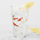 En skola med guldfiskarnas simma kretsar kring detta dricksglas. Fisken är oftast ljus orange, men det finns en vit sort med högdagrar av gult. Fisken målades från ett foto på en fiskdamm. Målningens bakgrund är genomskinlig, så glaset runt fisken är genomskinligt.