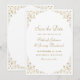 Detta eleganta vintage-inspirerade formella bröllops korts förhandsanmälan har texten i guldfärgad script- och seriffont, inramad av en delikat vintage guld vinstocksmotiv. Ramen upprepas på baksidan.