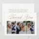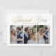 Guldmanus Tre Foto Collage Bröllop Tacksamhetskort | Skicka tack till familj och vänner för att de var en del av din speciella dag med detta anpassningsbara fotokollage tackkort. Det har elegant guldmanus och enkel typografi. Personlig genom att lägga till dina egna detaljer och innehålla dina favoritbröllopsfoton.