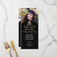 Examensmenykortet har eleganta typsnitt för att höja ditt speciella evenemang. Med gott om utrymme för att lägga till 2 bilder av examenkandidaten är detta menykort perfekt för att lägga till en personlig touch till din fest. Baksidan av detta kort har utrymme för dig att skryta om din examenkandidats prestationer och framtida planer. Detta menykort kommer att lägga till en sofistikerad touch till din dukning.