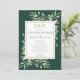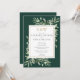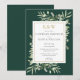 Med känsliga akvarellblad på smaragdgrön bakgrund kan denna trendiga bröllopsinbjudan anpassas med era initialer i guldmonogram och speciella information om bröllopsfesten. Designad av Thisisnotme©