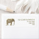 Enkel, modern, elegant vit returadressetikett med monogram och guldelefanten, symbol för: kärlek, fertilitet och lycka.