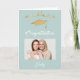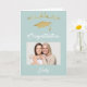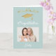 Elegant Guldornament Grattis Examens Fotokort. Examens kort med examensmössa, anpassad foto, trendig skrift och guldornament på burgunderröd bakgrund. Anpassa texten i kortet eller radera den.